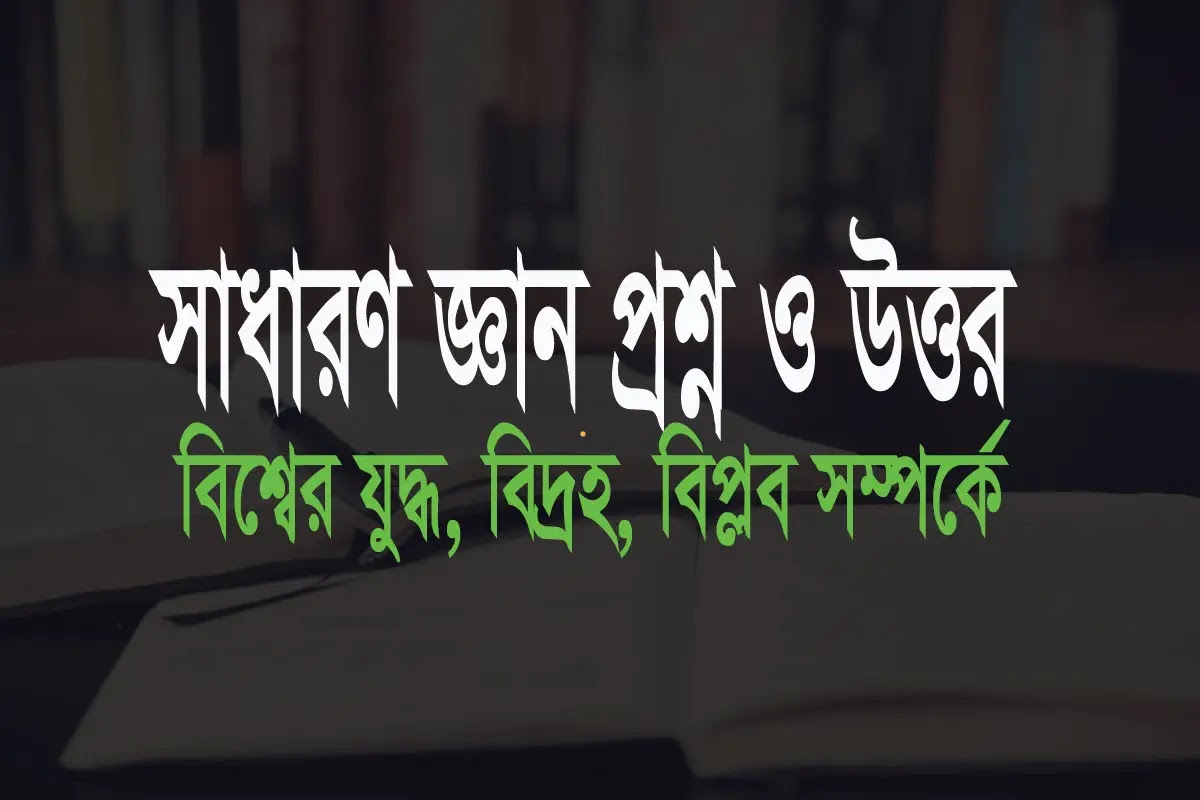 নিচে বিশ্বে যুদ্ধ বিগ্রহ ও বিপ্লব সম্পর্কে সাধারণ জ্ঞান প্রশ্ন ও উত্তর দেওয়া হলো-